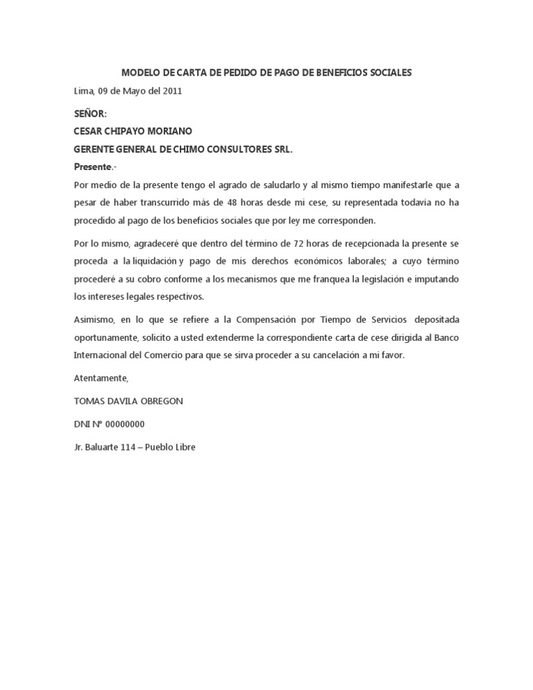 Modelo De Carta De Pedido De Pago De Beneficios Sociales via es.scribd.com